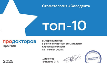 ⭐️ Клиника СолоДент вошла в топ-10 частных стоматологий Кировской области, (выбор пациентов)‼️